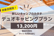 デュオキャビングプランのご案内「気軽にアウトドア気分を満喫したい」 「テント泊はまだ不安だけど、キャンプしてみたい そんな方へ向けた特別なプランをご用意しました。キャ…