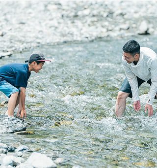施設内を流れる清流「青川」で、泳いだり水遊び!!