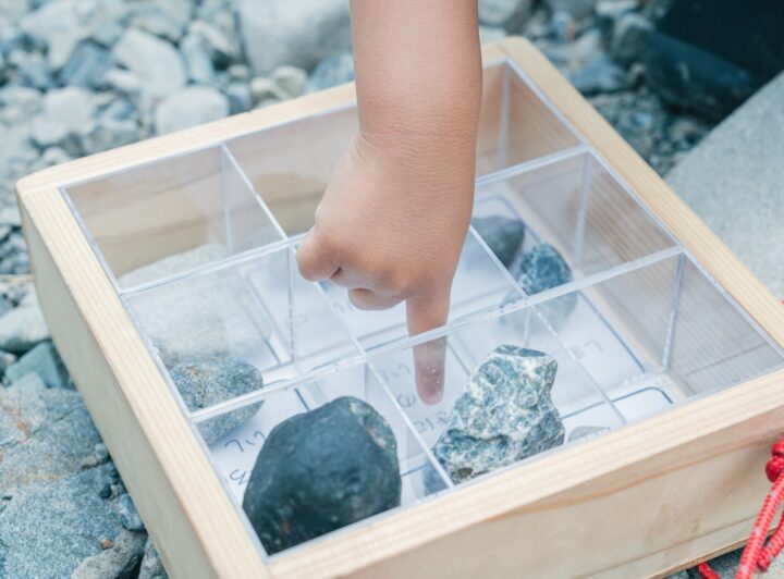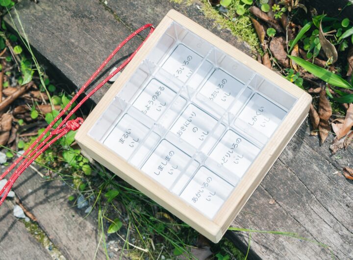 箱の中の9つのマスに指定された石を青川の河原から見つけ出せるかな!?