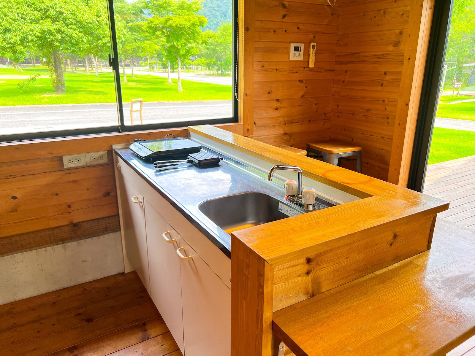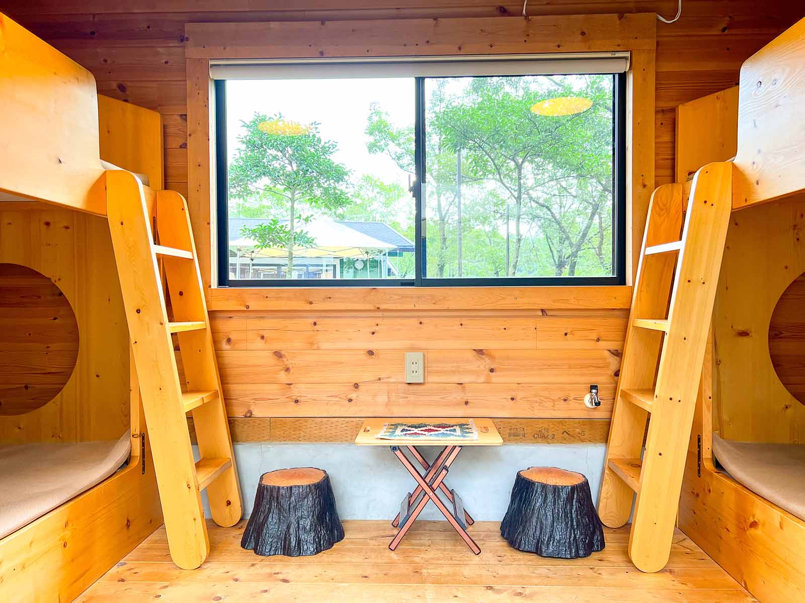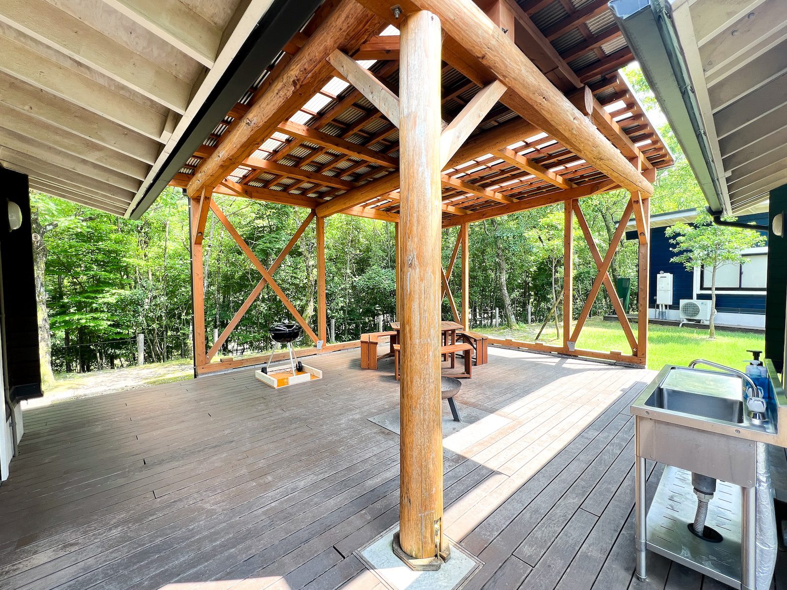 | 2区画 | 【キャビングサイト共通】 BESSのIMAGO(リビング棟、宿泊棟)、屋根付きウッドデッキ、給湯器付きシンク、冷蔵庫、トイレ、エアコン、焚火台(火バサミ付)、2段ベッド×2台(幅120cm×奥行180cm)※マットレスと敷シーツ有。掛布団や枕はございません。 【“食”-FOOD-〈テーマ備品〉】 IHコンロ(1口用)、BBQコンロ、ホットサンドメーカー |