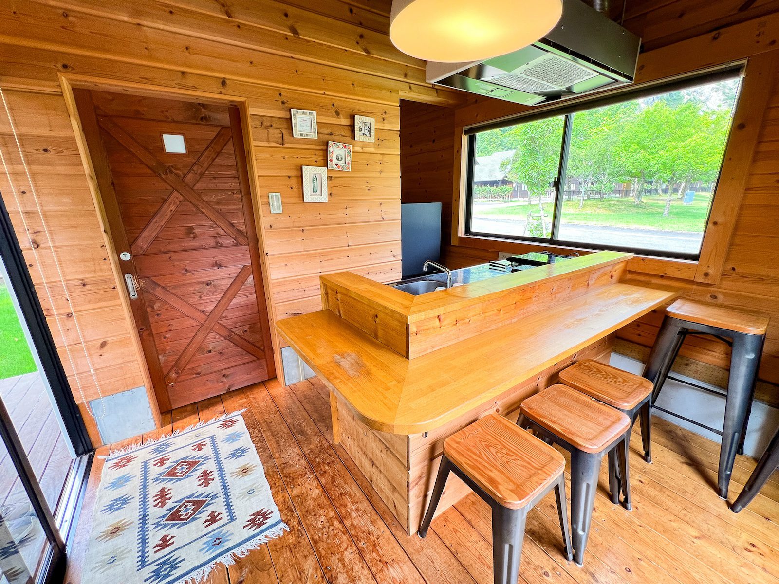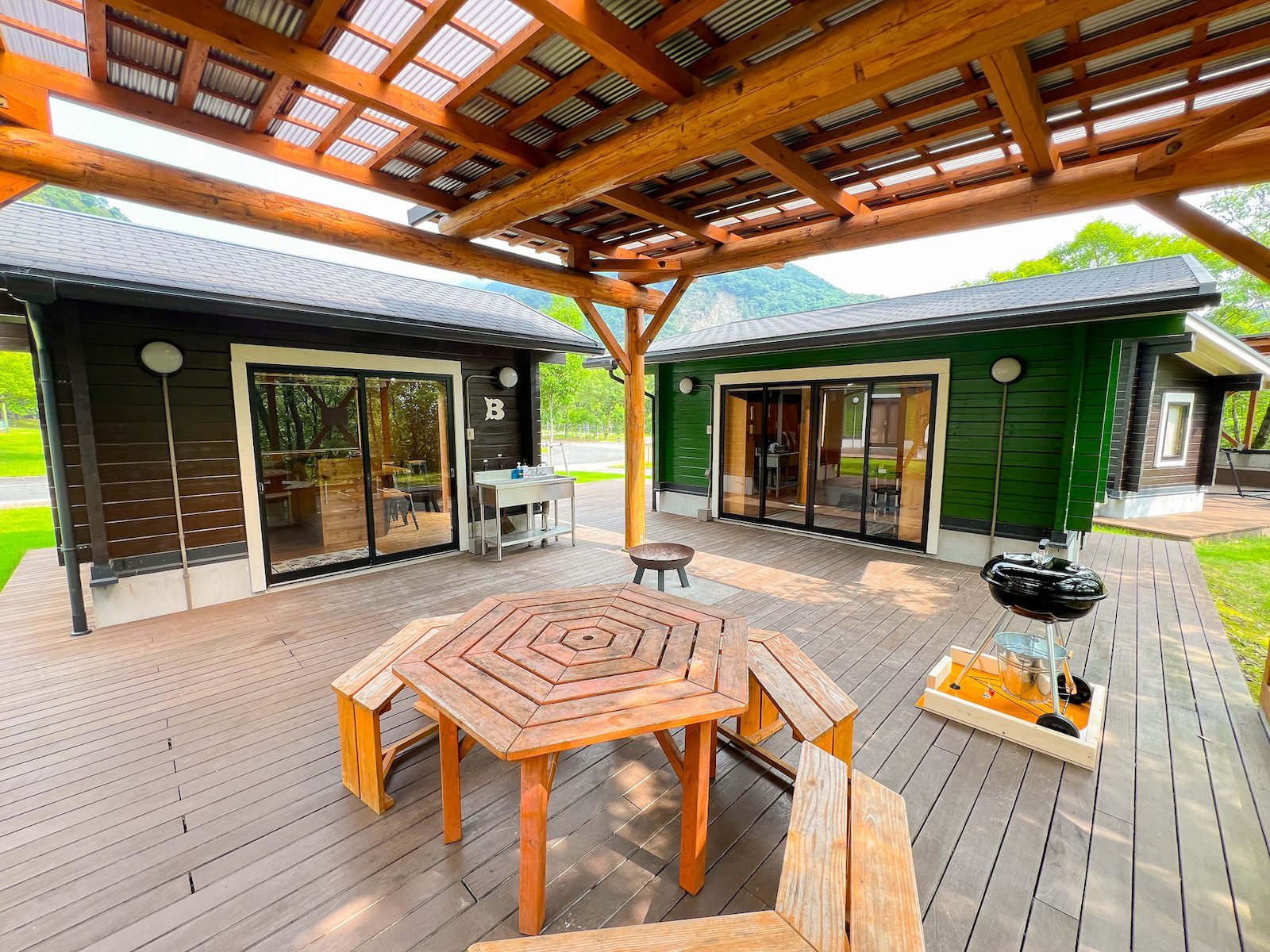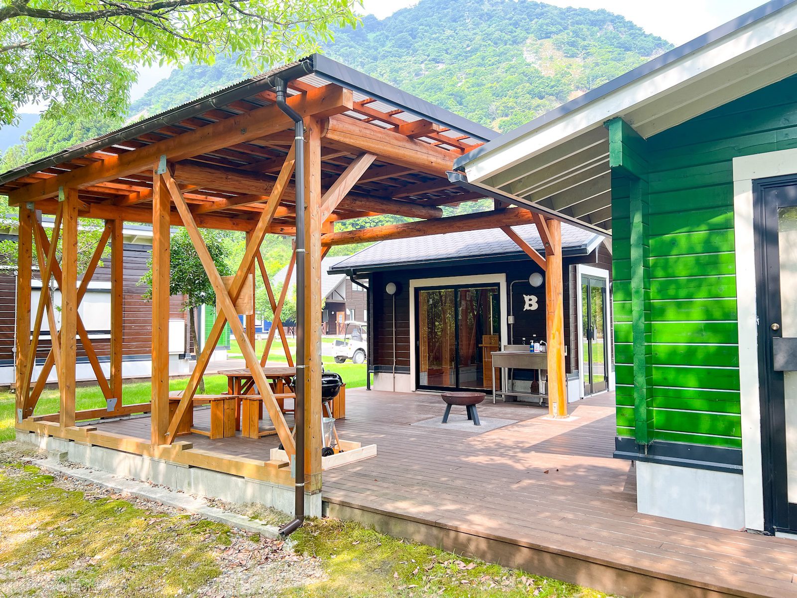 | 2区画 | 【キャビングサイト共通】 BESSのIMAGO(リビング棟、宿泊棟)、屋根付きウッドデッキ、給湯器付きシンク、冷蔵庫、トイレ、エアコン、焚火台(火バサミ付)、2段ベッド×2台(幅120cm×奥行180cm)※マットレスと敷シーツ有。掛布団や枕はございません。 【“食”-FOOD-〈テーマ備品〉】 IHコンロ(1口用)、BBQコンロ、ホットサンドメーカー |