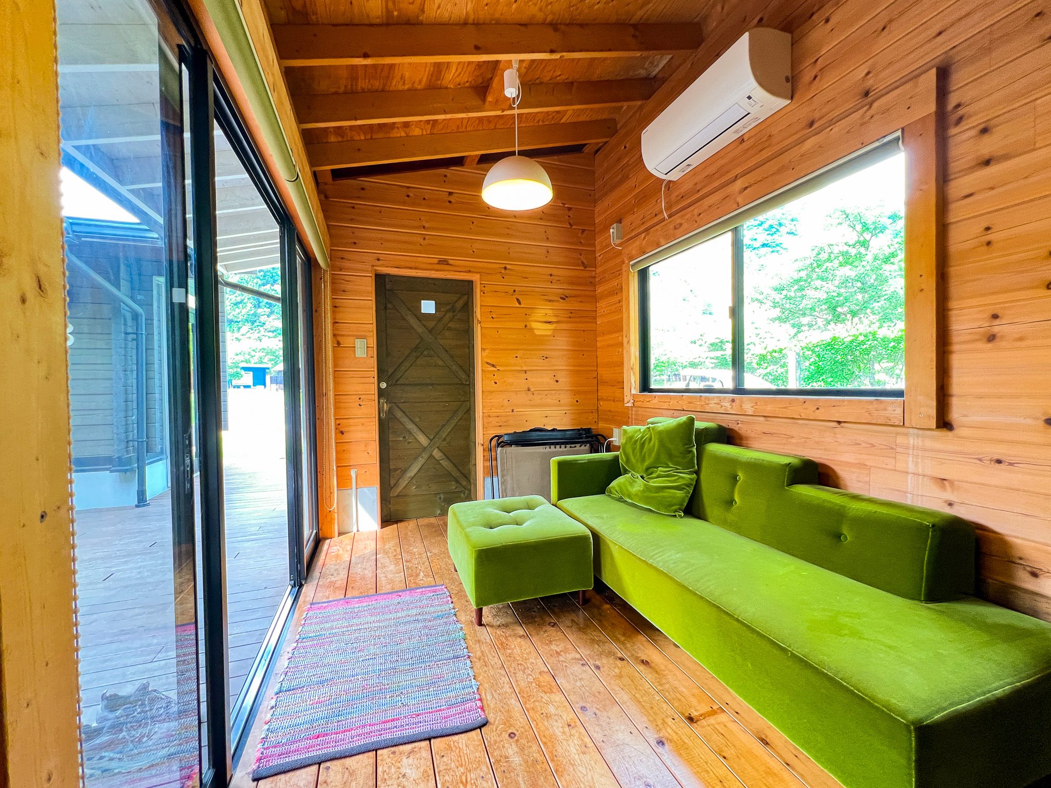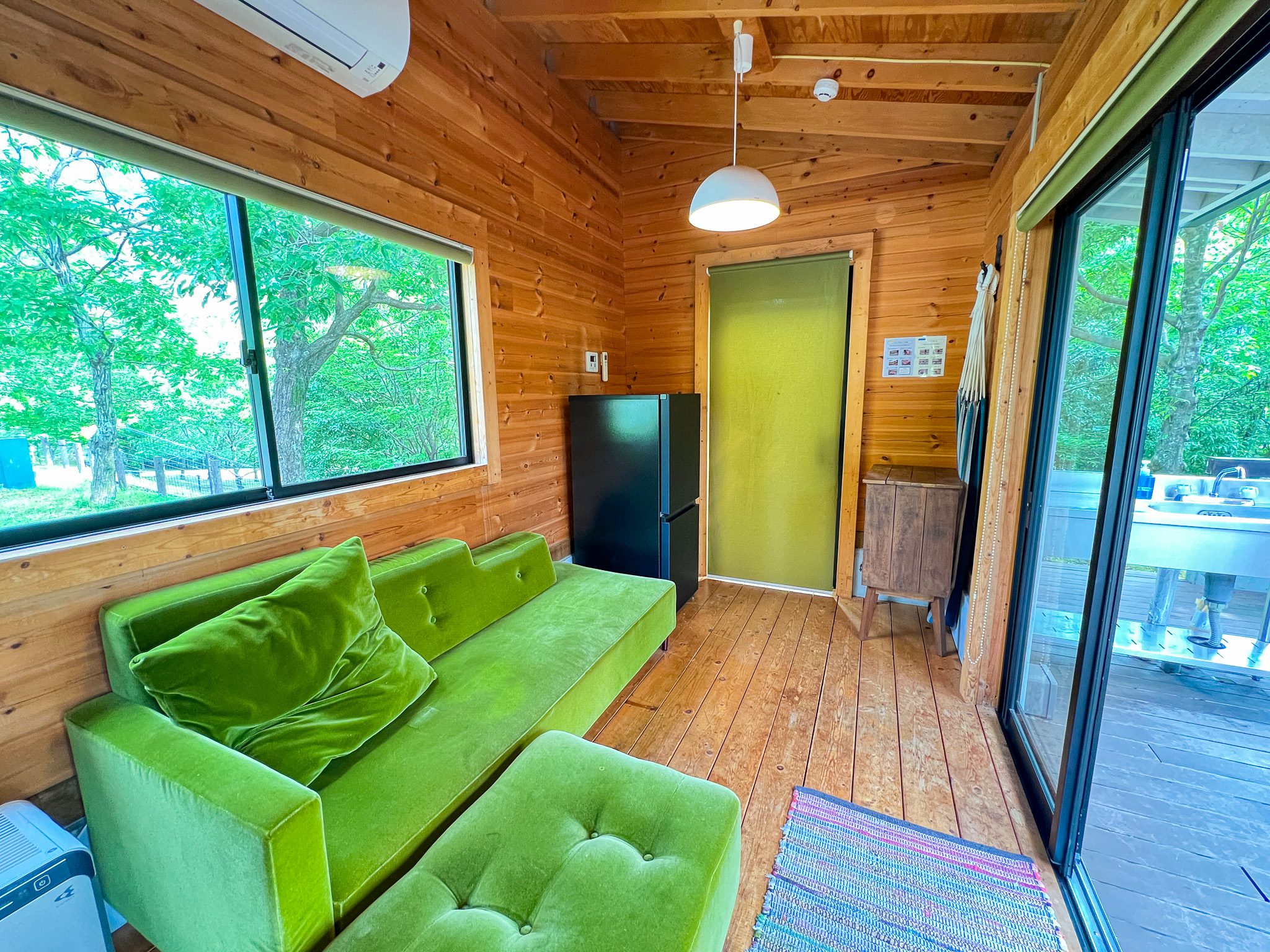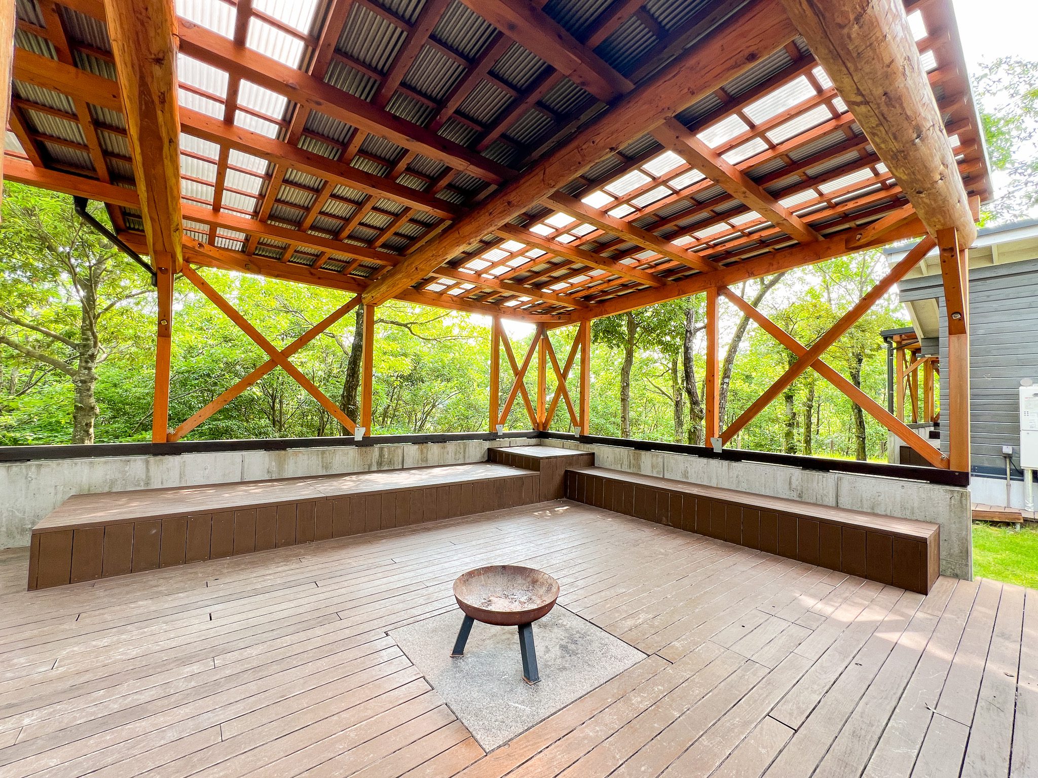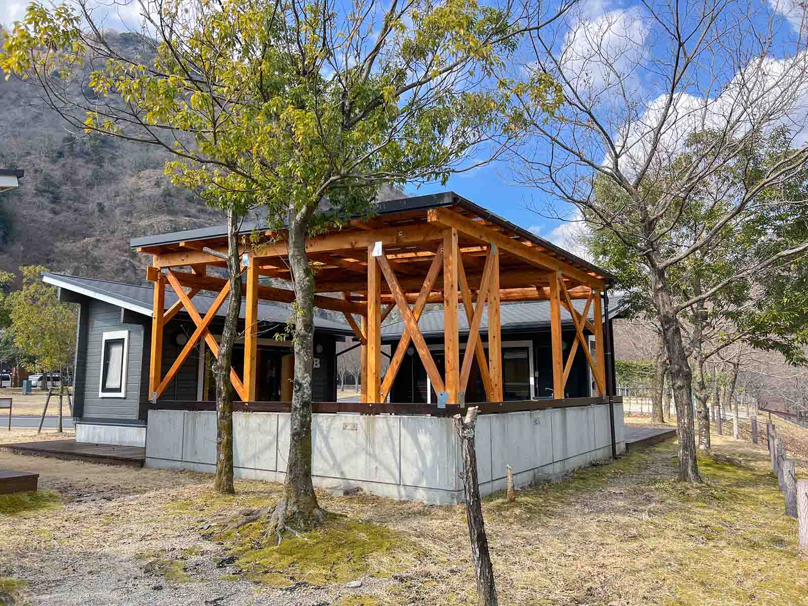 | 2区画 | 【キャビングサイト共通】 BESSのIMAGO(リビング棟、宿泊棟)、屋根付きウッドデッキ、冷蔵庫、トイレ、エアコン、焚火台(火バサミ付)、2段ベッド×2台(幅120cm×奥行180cm)※マットレスと敷シーツ有。掛布団や枕はございません。 【“癒”-RELAX-〈テーマ備品〉】 ハンモック(ダブルサイズ)×1、リクライニングチェア×2 |