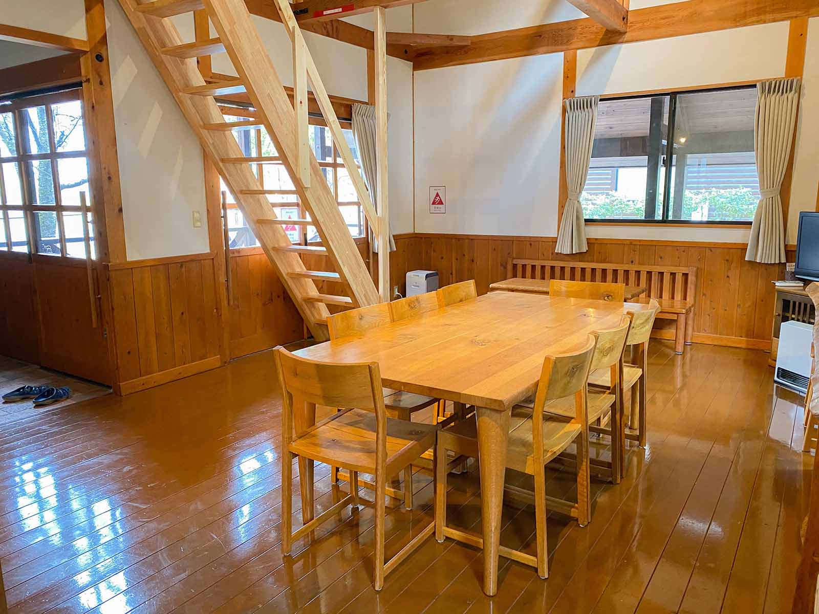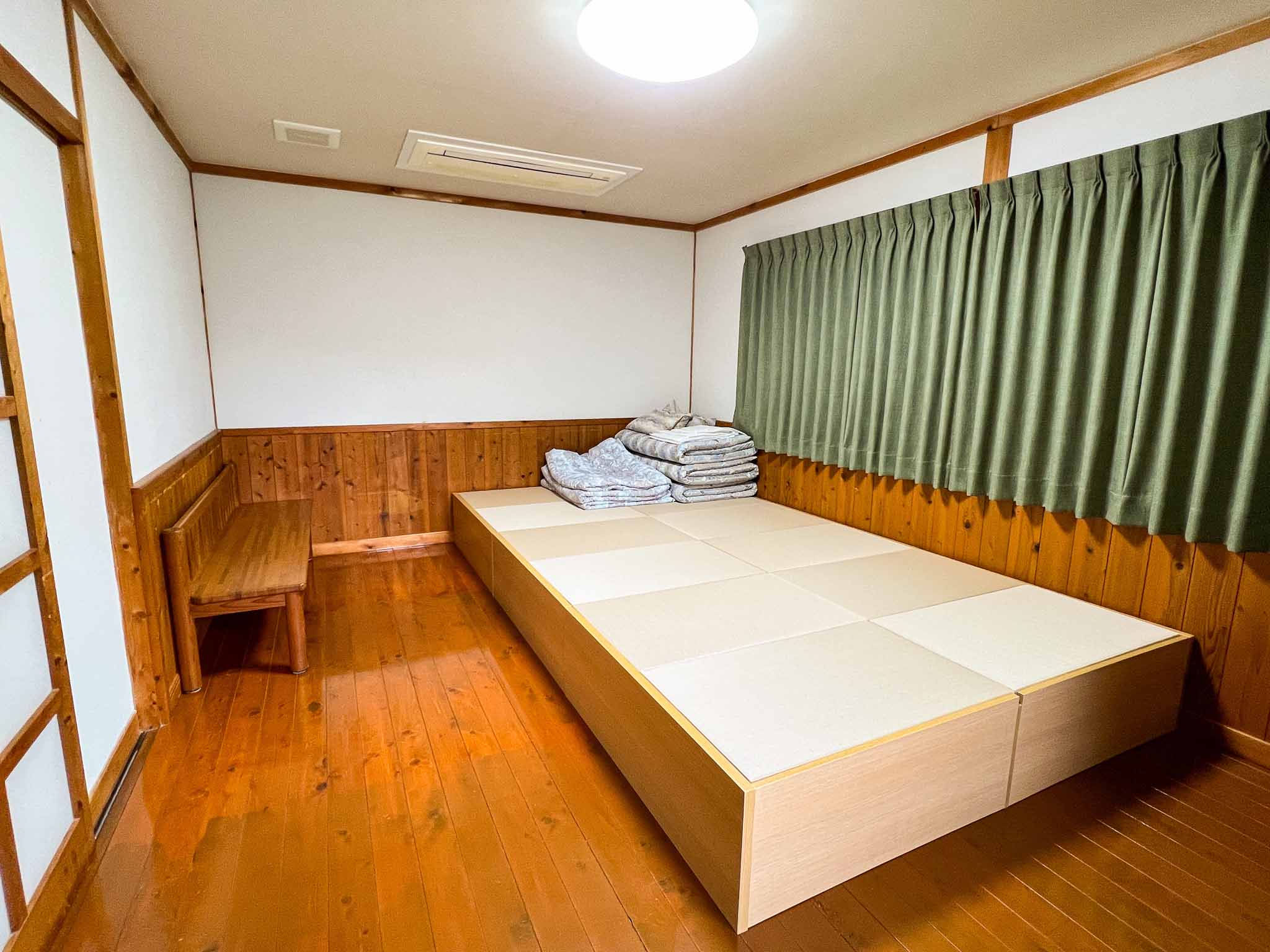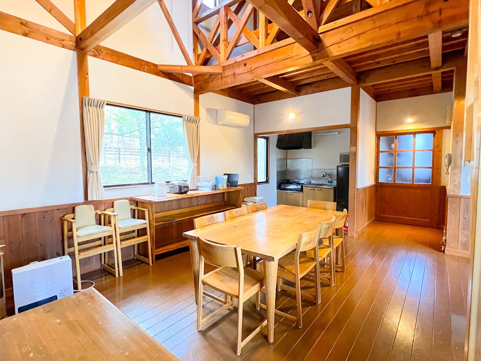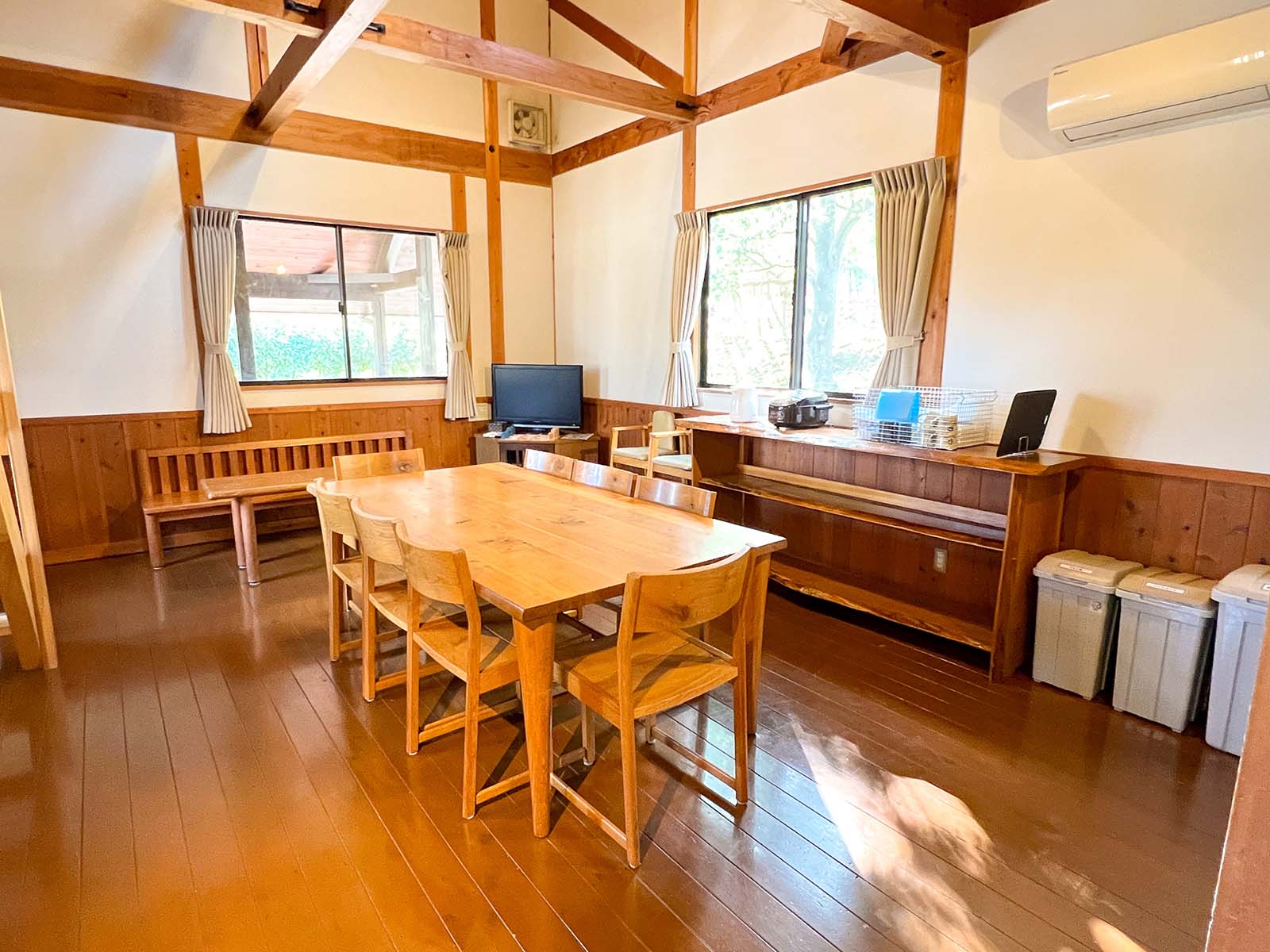 | 1棟 | キッチン、トイレ、風呂、エアコン、調理器具、8名分の食器と寝具、cancanCAPS(木製3Dマルバツゲーム) 【電化製品】テレビ、冷蔵庫、電子レンジ、炊飯器、電気ケトル、ドライヤー 【調理器具】鍋、フライパン、ホットサンドメーカー、ボ-ル、ザル、まな板、包丁、お玉、フライ返し、しゃもじなど 【食器類】大皿、ボ-ル皿、耐熱カップ、スプーン、箸 |