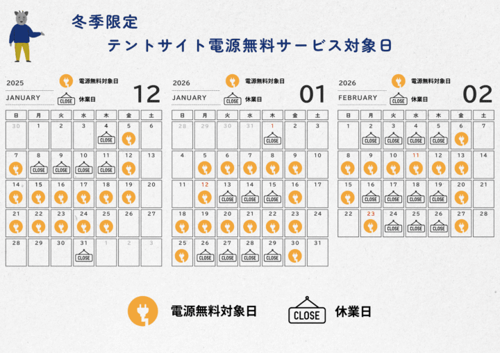バリューシーズン期間中(2025年12月~2026年2月)の対象日では、追加料金なしで電源をご利用いただけます。